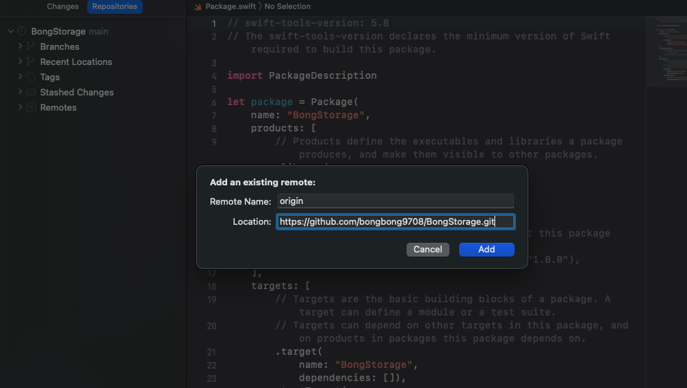 나는 Git에 Repository를 만들어 준 후 SPM과 연결했다.