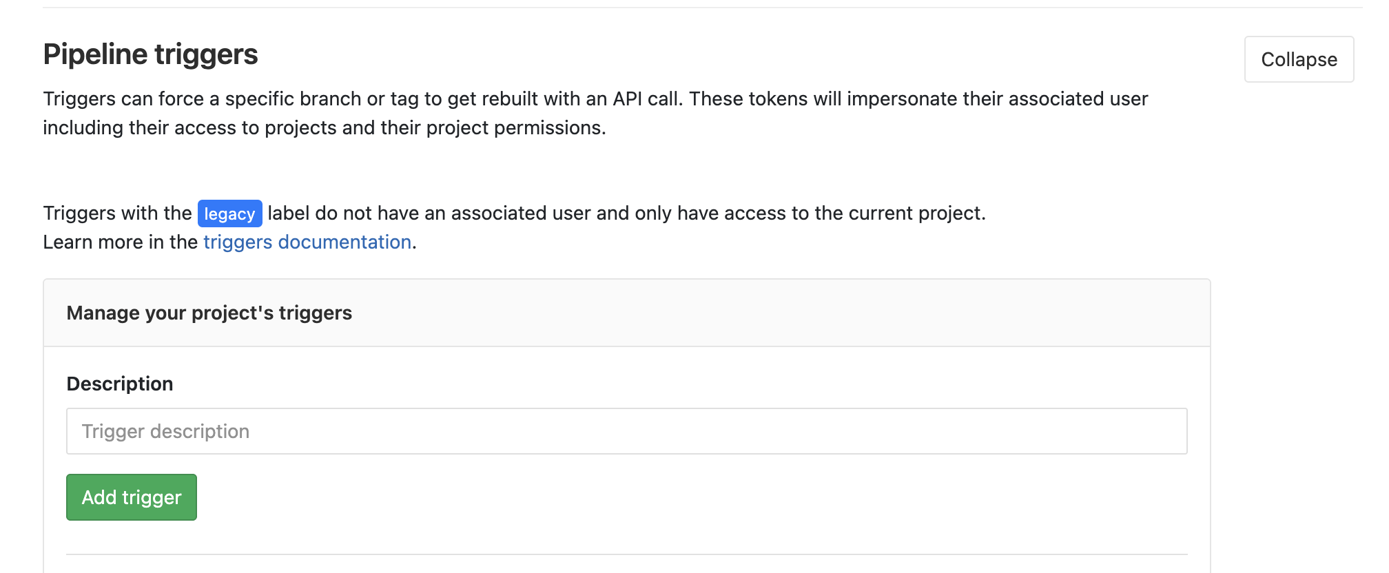 GitLab -> Project -> Settings -> CI/CD -> Pipeline triggers에 있습니다.