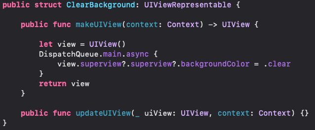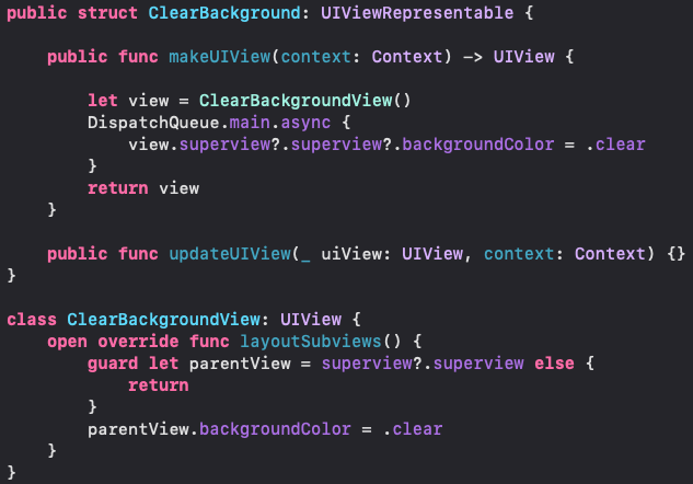 UIView Representable을 이용해서 ClearBackground를 만들어주고